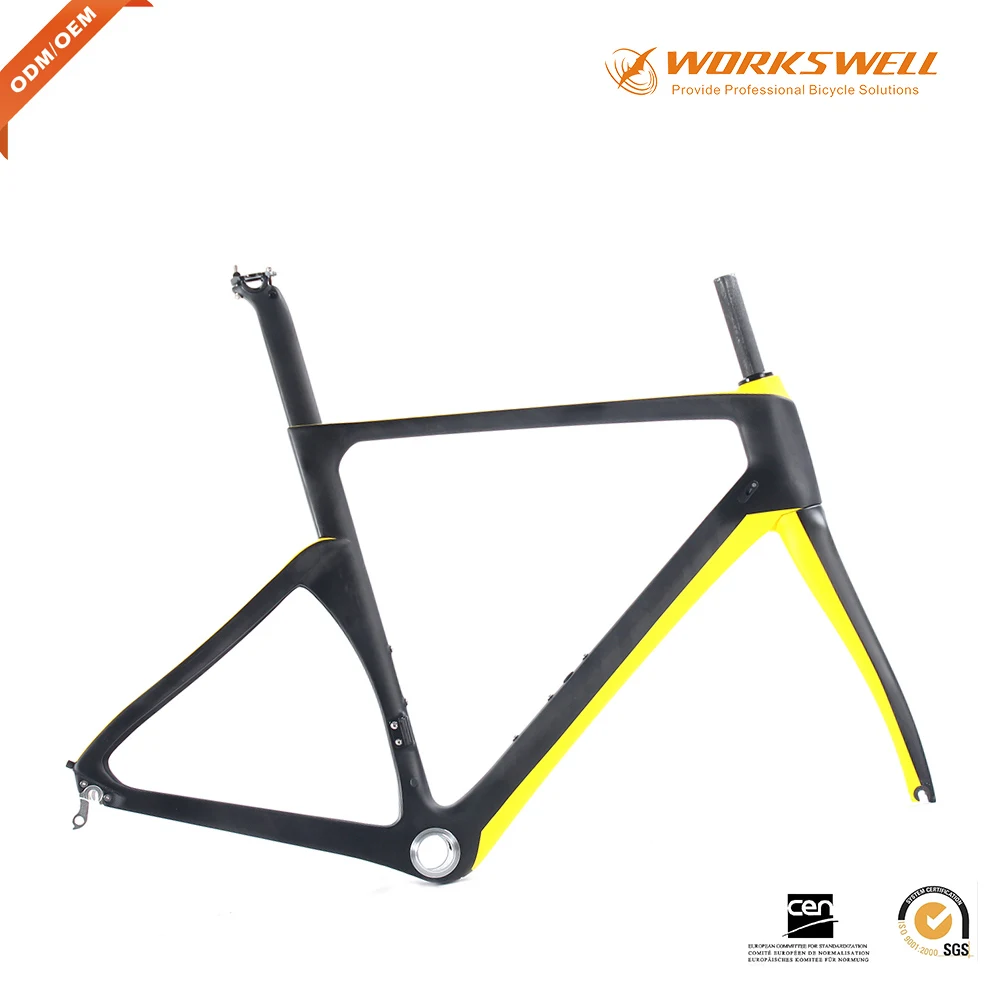 WelcomeTo WORKSWELL 2016-2017 new carbon road bike frame road tt bike frame road carbon frameset BICICLETTA bicyce 44/46/49/52/54/56/58cm, Disc brake /V brake / Direct mount brake( X brake ) available, Disc brake have QR Or thru axle , V brake have QR available , X brake have QR available . Specifications: Size: 46/49/52/54/56/58 cm available . Weave: UD Frame weight: 980±40g (52 SIZE ). Fork weight:365 ± 15g Seatpost weight: 160 ± 10g BB:BSA/BB30 / PF30 / BB86 Headset-top: 1-1/8" Headset-down: 1-1/2" Include :Frame ,Fork,Headset ,Seatpost ,Seat Clamp. Cable System :Internal cable routing system for Mechanicaland DI2 Electronic . Brakes system : V brake /Direct mount brake and Disc brake Hub type : QR or Thru axle . Test : CEN Tested Quality guarantee:Two years . We can custom-make for customer's design logo and color . Buyer please read: Shipping : 1.Please be sure your shipping address is correct .We will only follow your address listed at the alibaba payment for the shipment . 2.Please leave me your reachable phone number , it is required by the post office of China when filling out the shipping form ! I won`t be able to ship your items if you don`t give me your phone number .We usually ship the package by EMS .It usually takes about 7-14 working days to arrive your location . 3. If you want to get your cargoes faster ,you can pay another shipping cost and and I will ship them by DHL or UPS . If you need ,contact me . 4.Please check the goods if it's damaged before signing . If so , please refuse to sign it , otherwise ,we are not responsible for it once you sign it. Terms of sale : Please contact us if you have any problems within 30 days of purchase and I will make every reasonable attempt to assure your complete satisfaction .If any items don`t reach your expectation ,we will promptly return or refund your money . But the items must be returned in the original condition . Also wedon`t assume any TARIFF for the customs of your country.We usually marked low price for the package value . Any questions , please contact me !